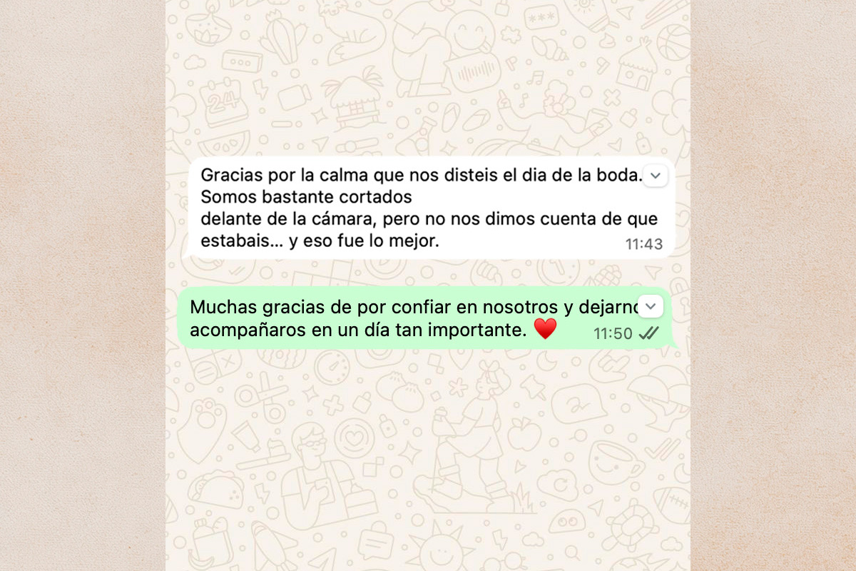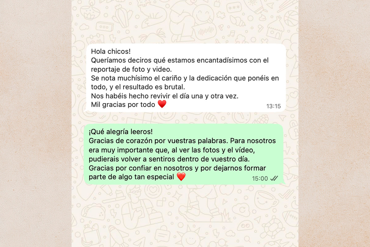 Trabajo real. Parejas reales. Sin fórmulas. Respondemos personalmente.